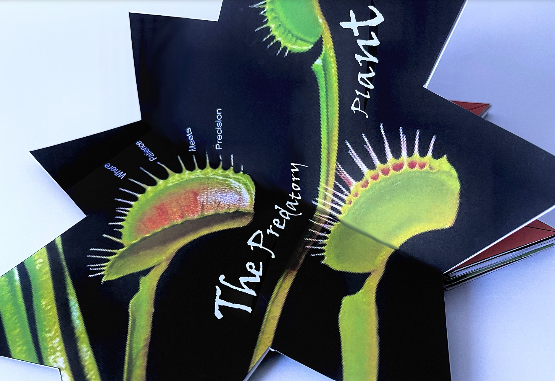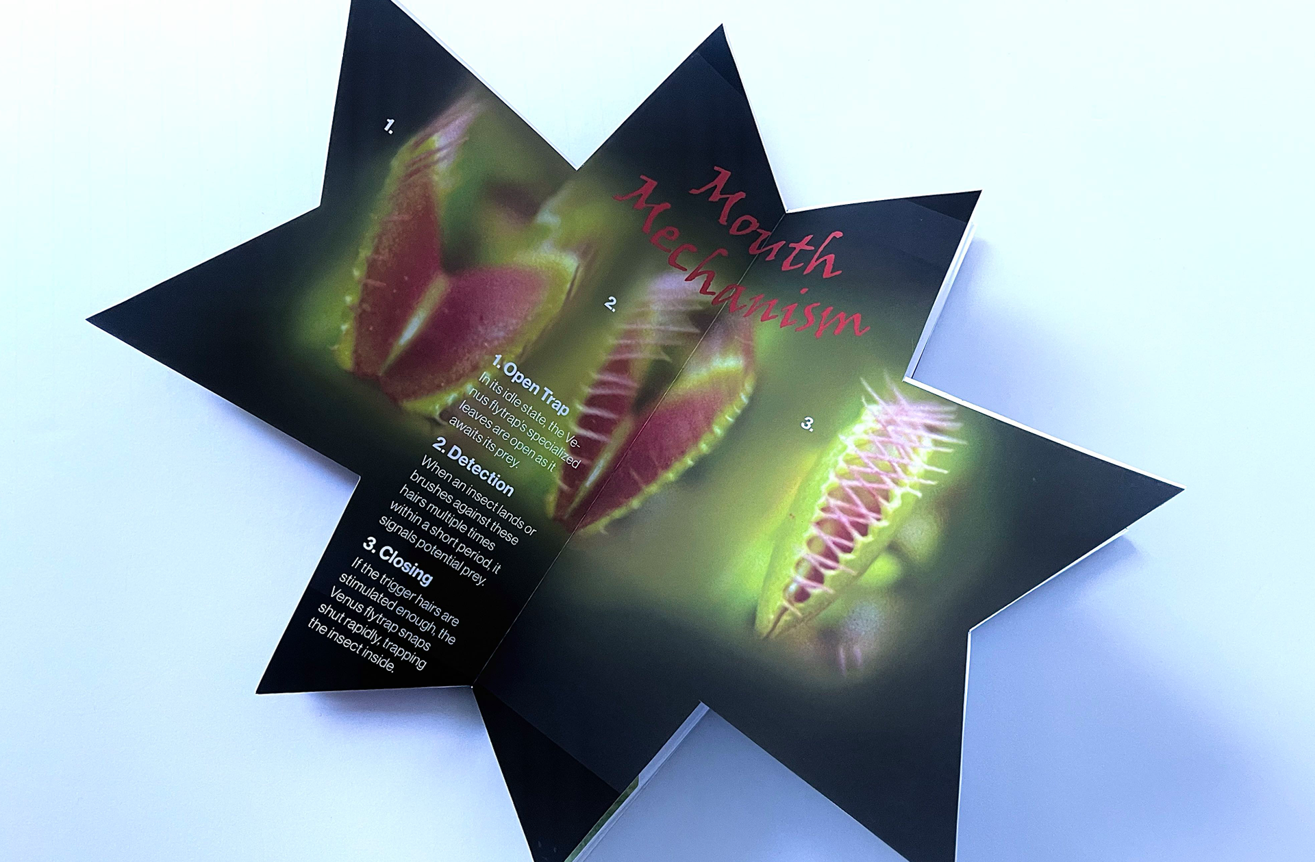 . The shape of the book reflects the overall shape of the plant’s trap, as it has several pointy edges.